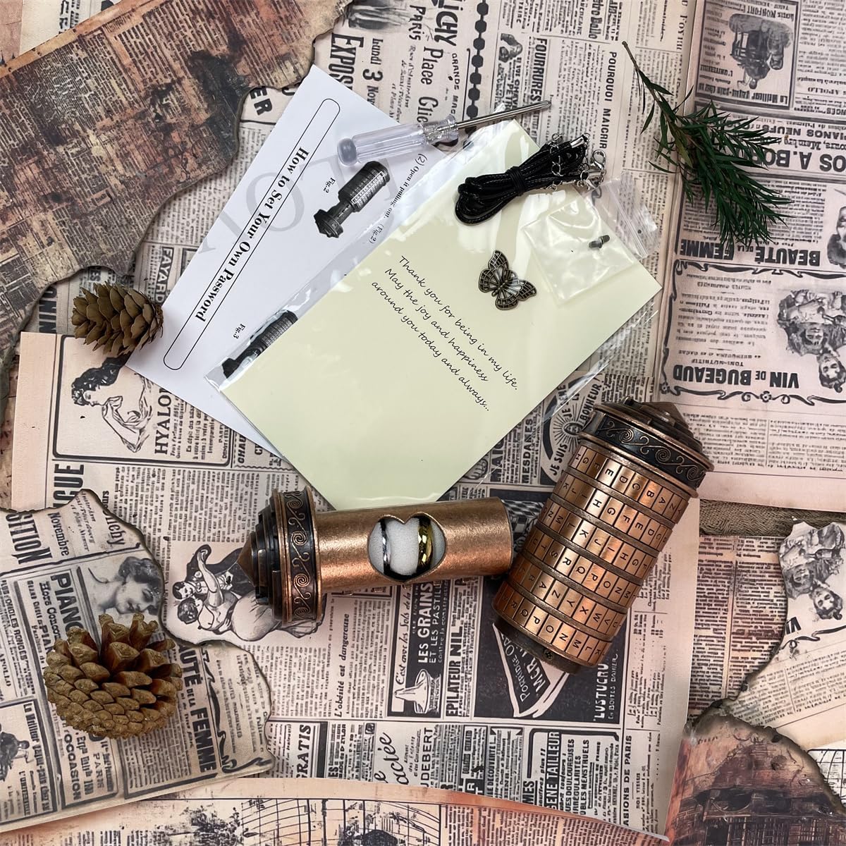 Experience the thrill of secrecy with this Da Vinci-style Cryptex puzzle box. Whether used as a romantic gift, a puzzle box for adults, or a hidden gift box, this code lock can be reset in minutes following the illustrated 9-step guide.